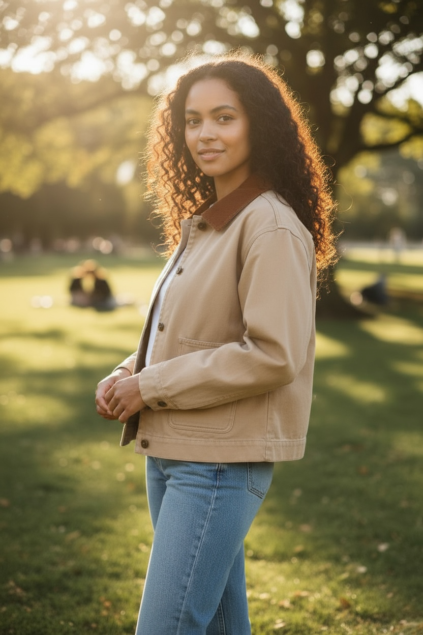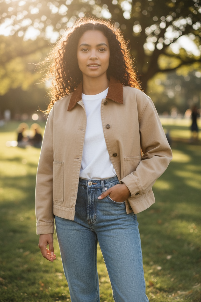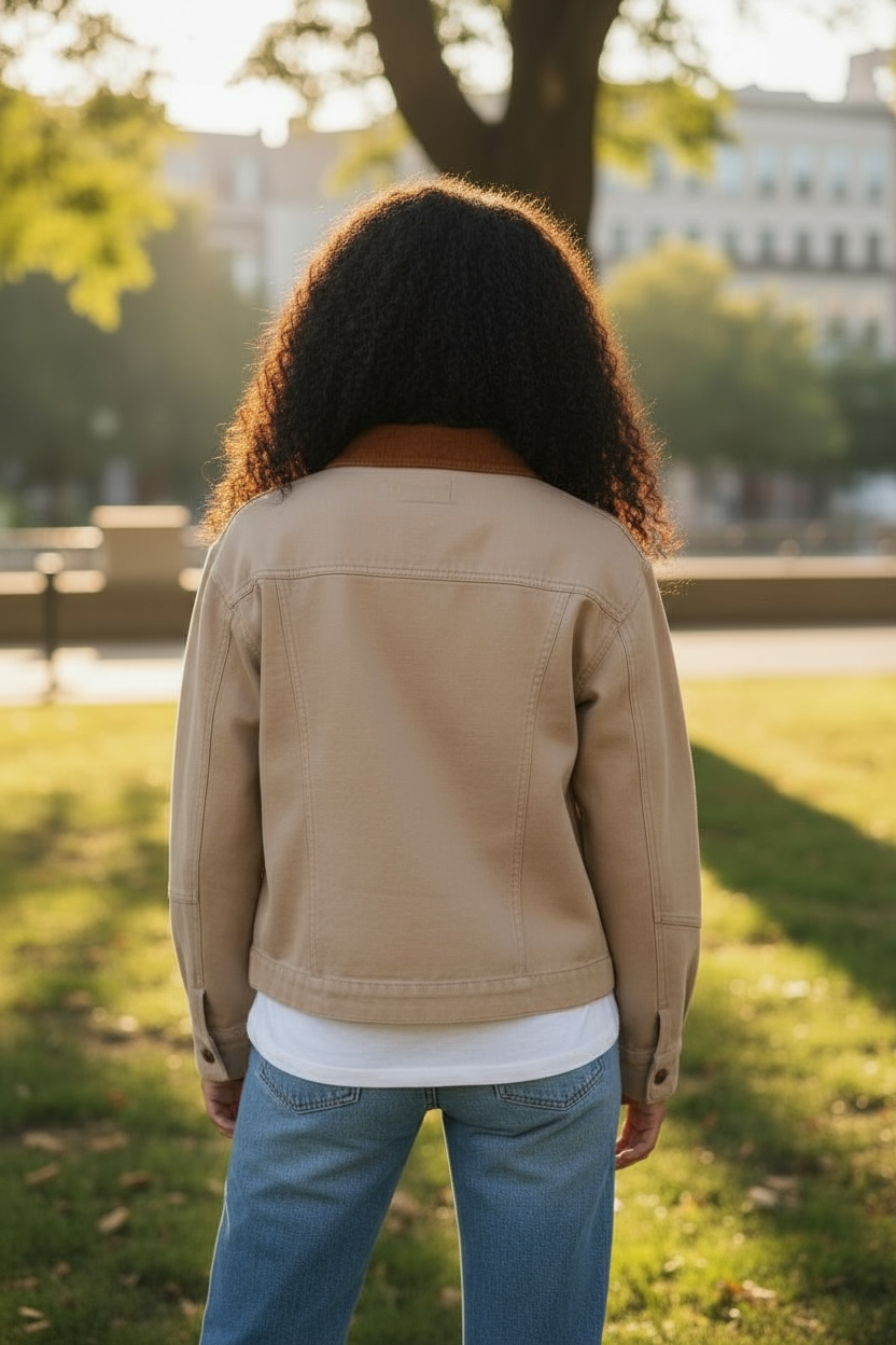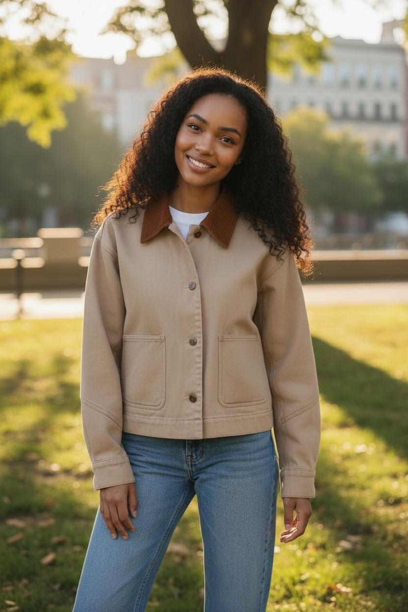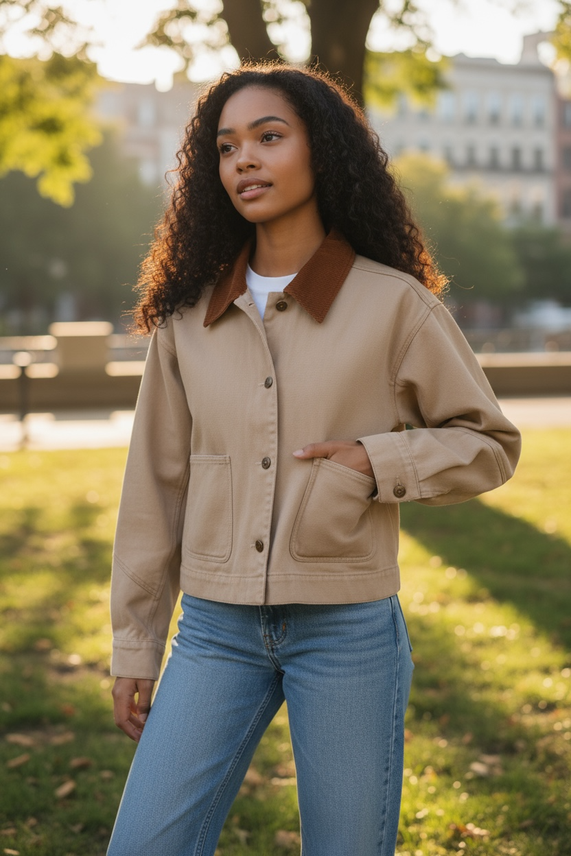 Make a bold fashion statement with the Cotton Twill Cropped Barn Jacket, designed to blend classic style with modern flair....