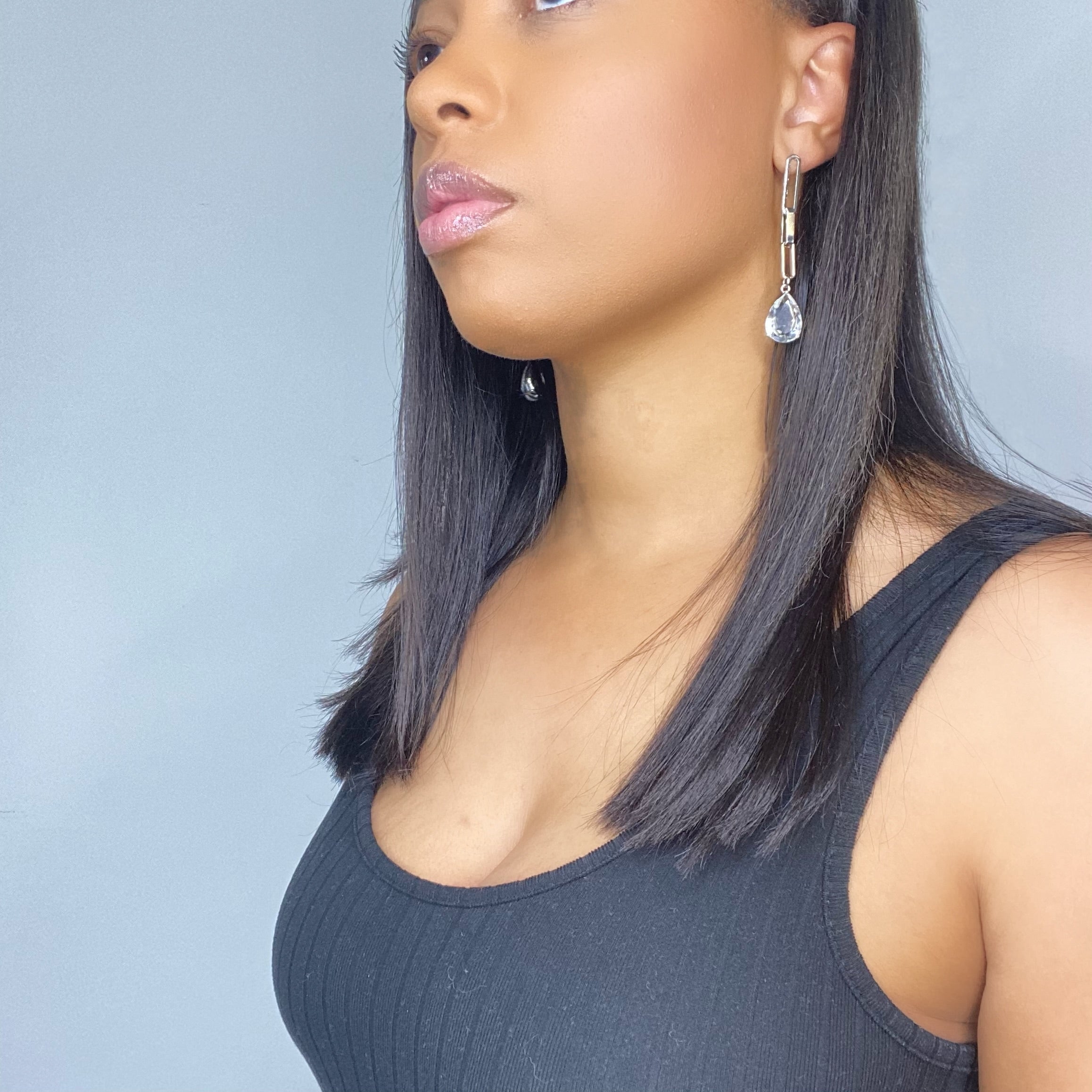 Our Diamond Dropped Earrings are a must have essential piece. They are chic and have the perfect detailing.
