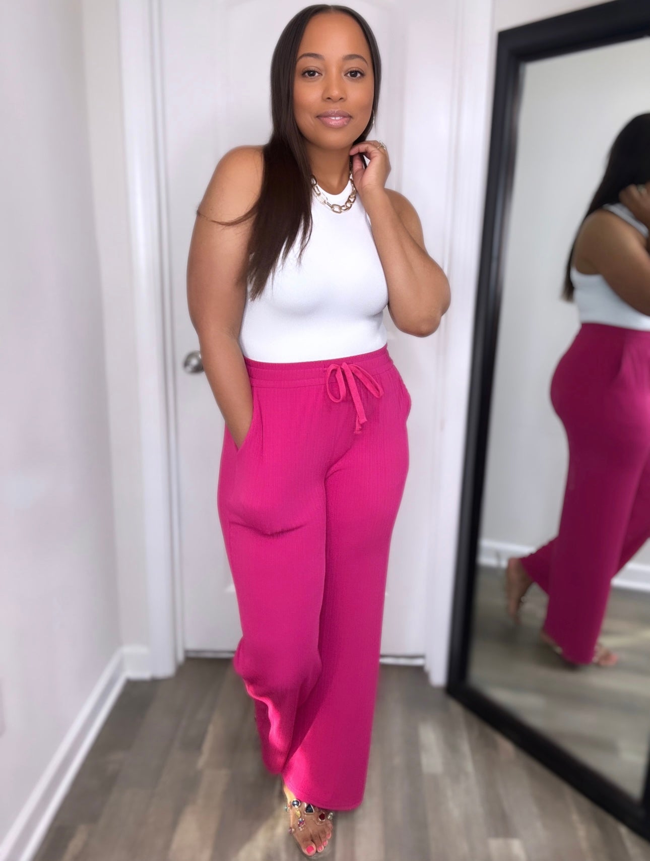 These pants are designed to provide comfort with their stretch knit fabric and drawstring high-rise waist. They also feature slanted...
