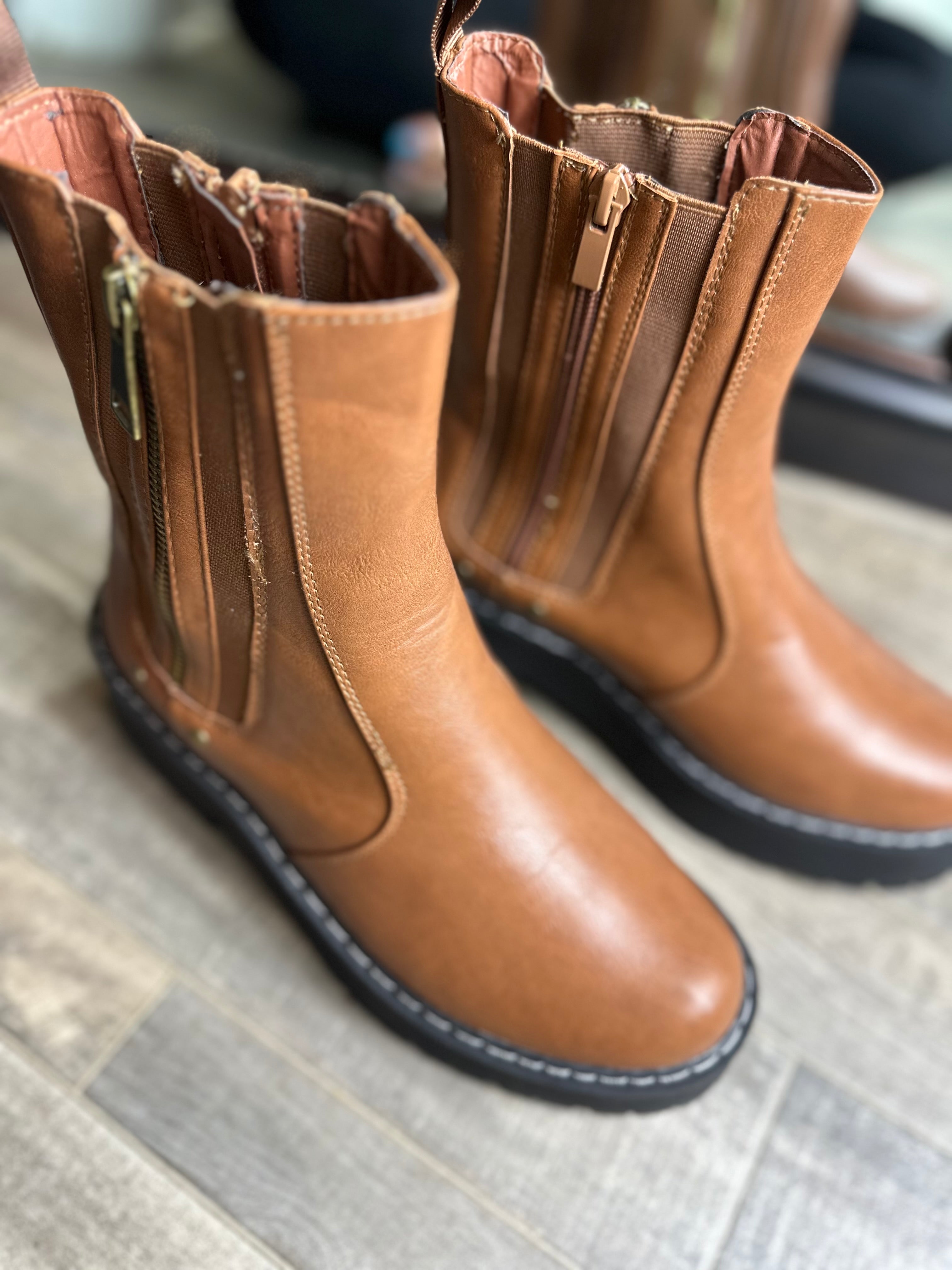 Unmatched Zip Platform Boots - Brown