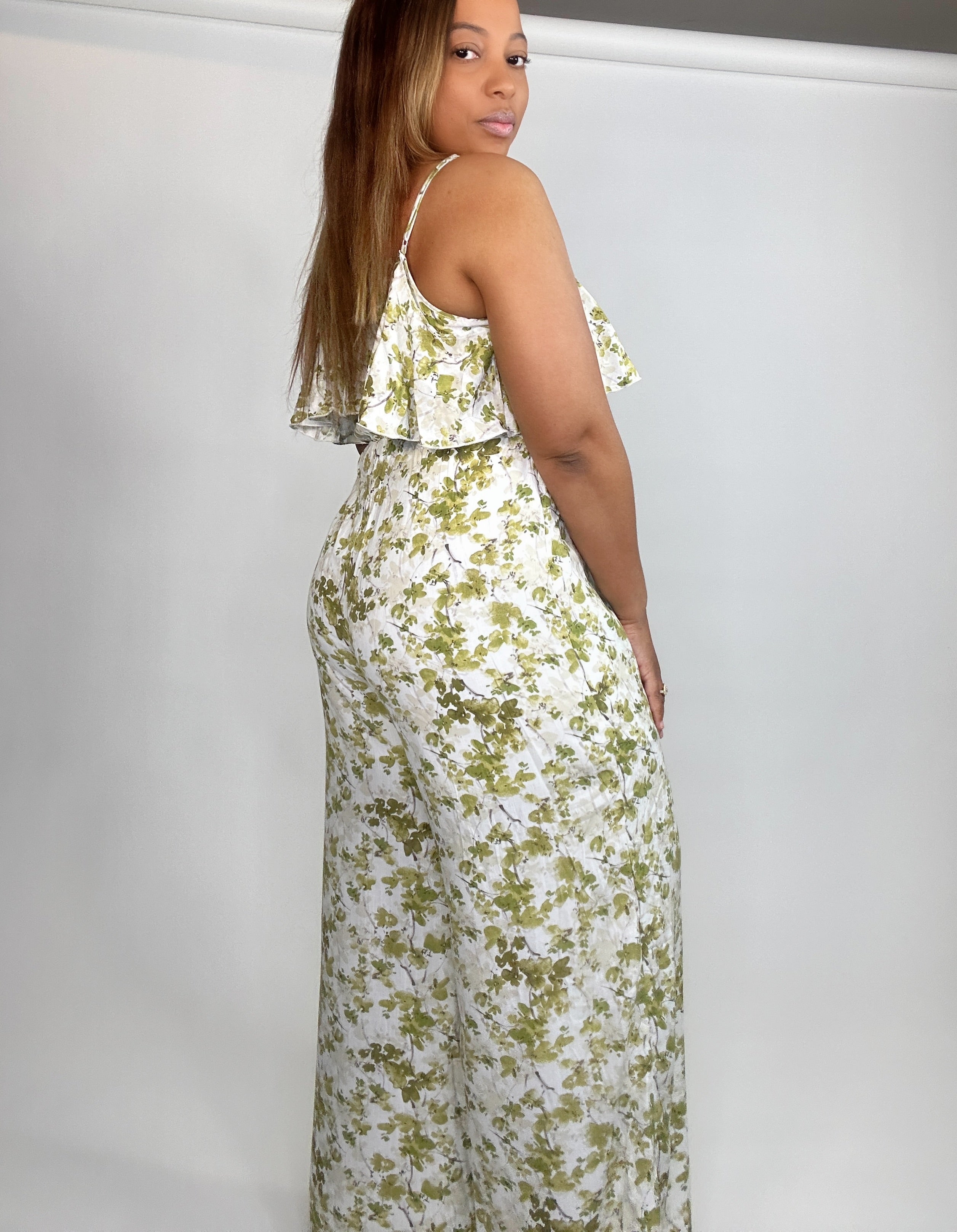 Floral Print Spaghetti Strap Wide Leg Jumpsuit