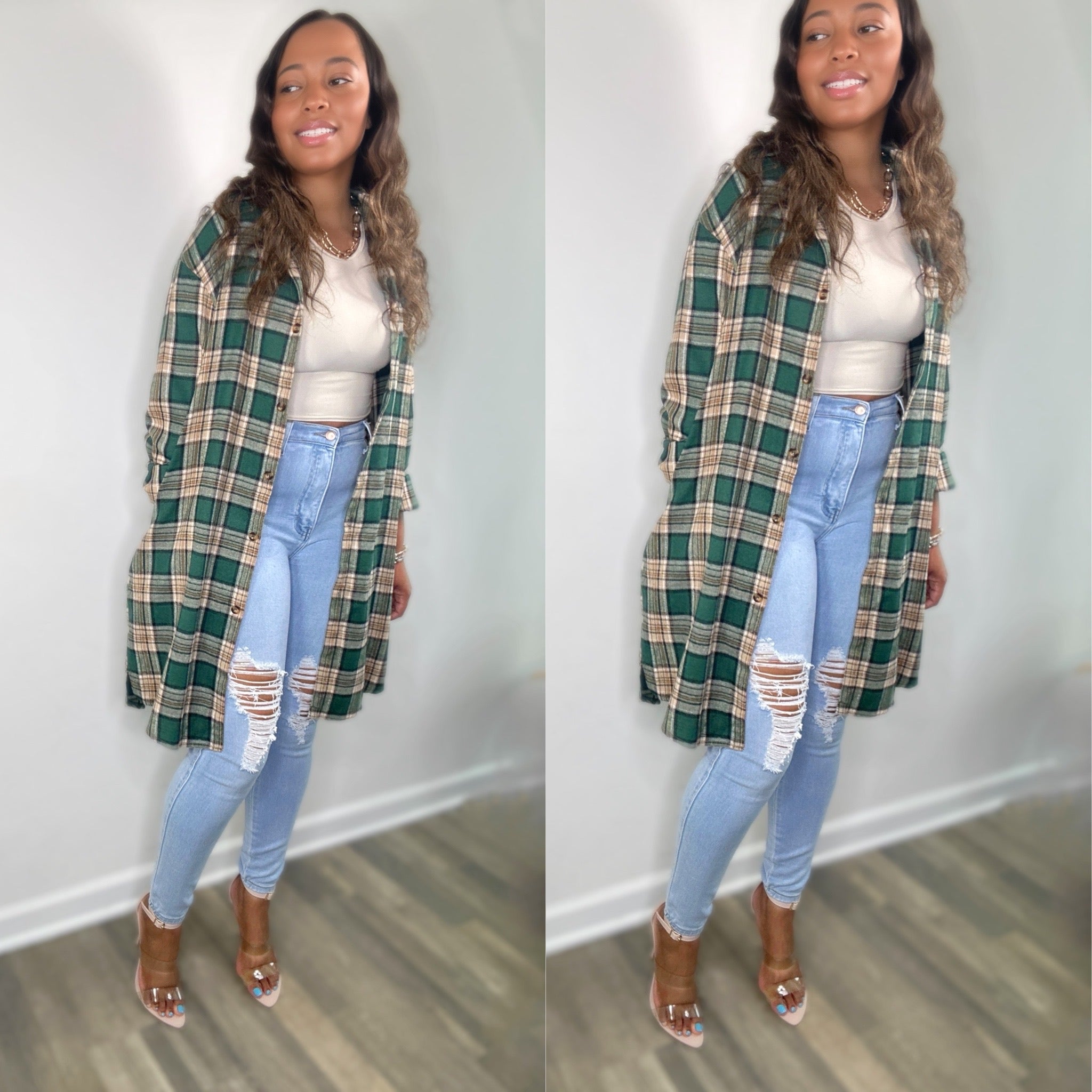 Unmatched Plaid Collared Neck Long Sleeve Shirt