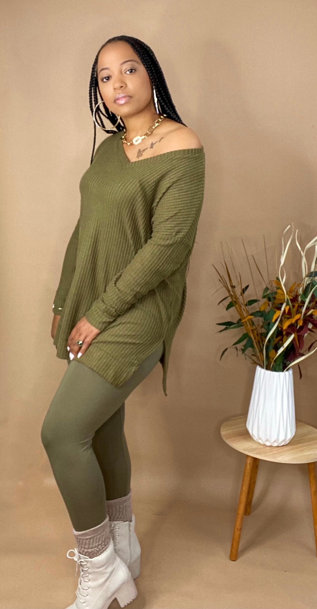This Fall 2020 best seller is back in a new color! You’re going to love the Olive Thermal Sweater Legging...