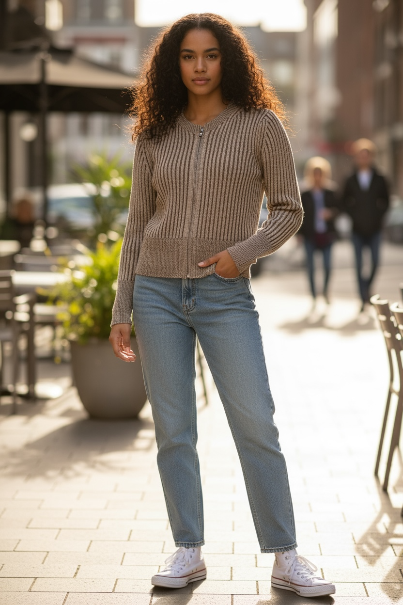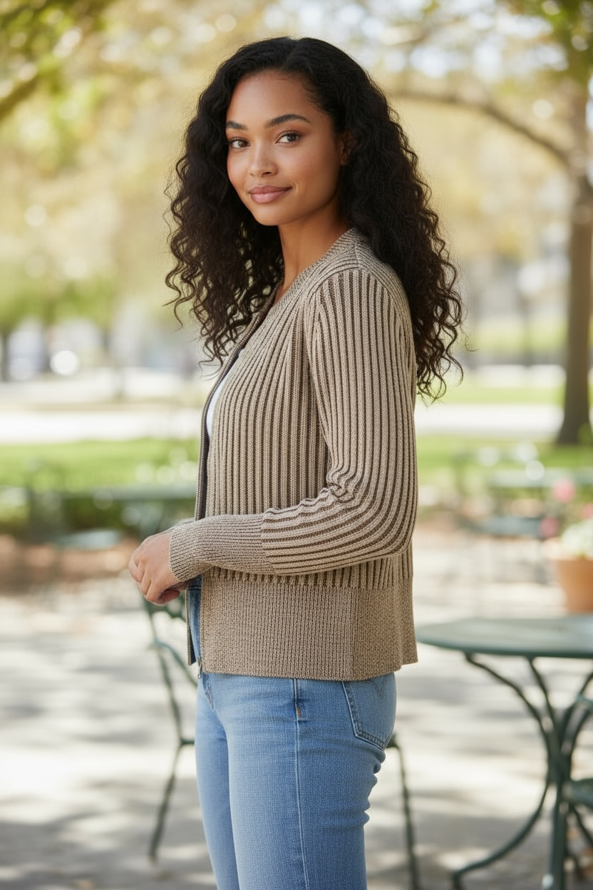 Stay cozy and stylish with our Ribbed Two-Tone Zip-Up Sweater Cardigan, designed to elevate your casual outfits with a touch...