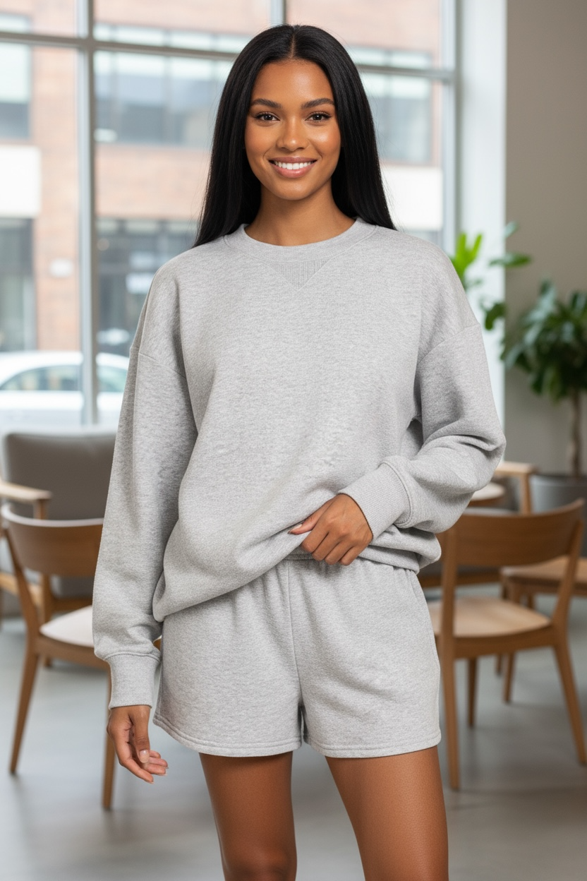 This fashion heather grey loungewear set features premium cotton blend fabric for ultimate comfort and durability. The oversized sweatshirt offers...