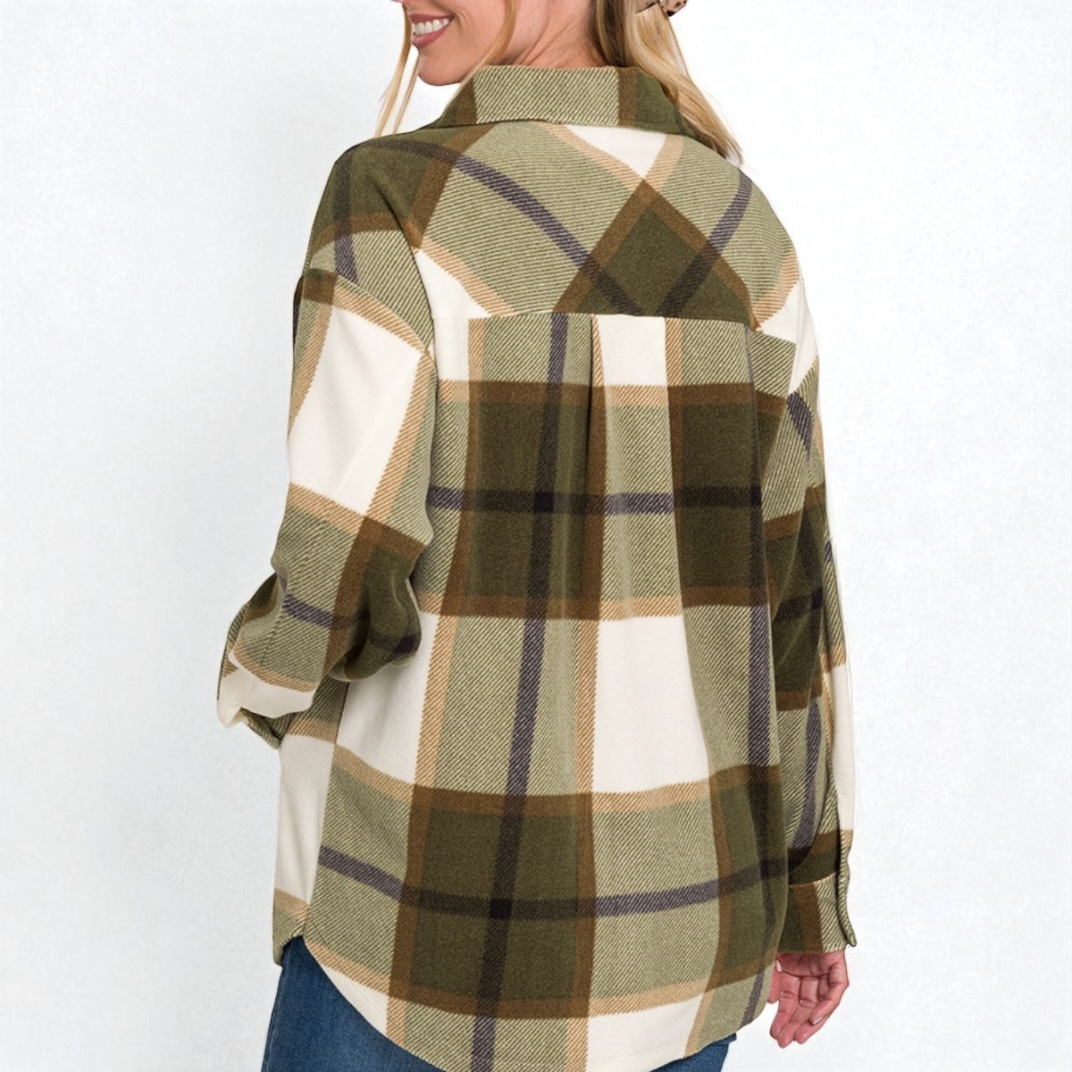 Oversized Plaid Fleece Shacket - Olive