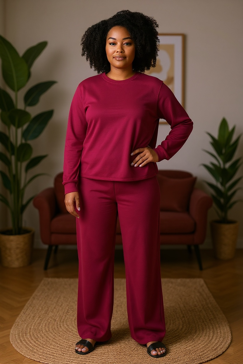 Crewneck Sweatshirt and Pants Set (Cabernet)