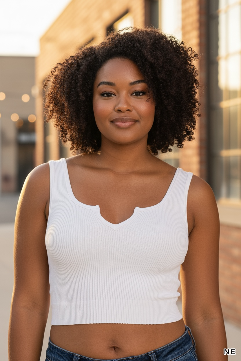 This stylish white ribbed crop tank top features a flattering scalloped neckline that adds feminine charm to any outfit. Made...