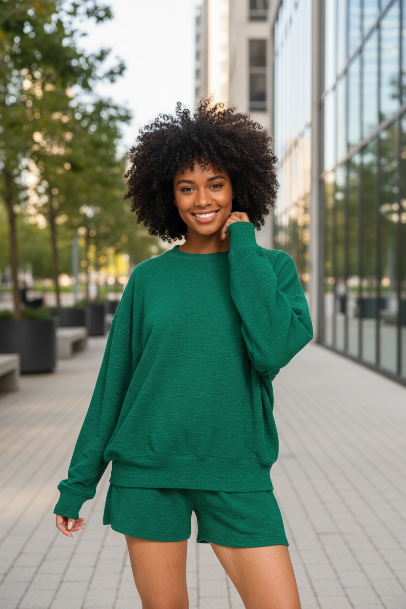 Your Favorite Long Sleeve Top and Shorts Set - Hunter Green