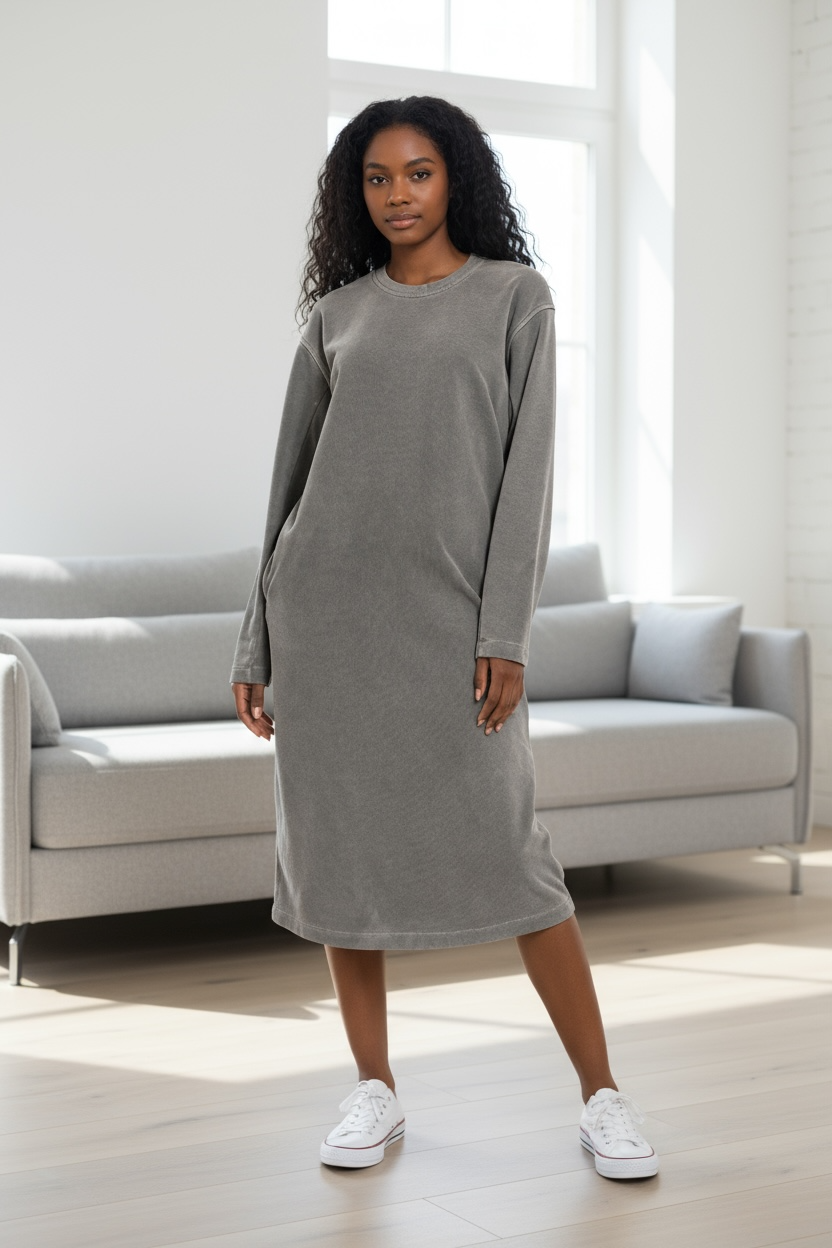Introducing our Soft Fleece Pigment Dye Sweatshirt Dress, where comfort meets style in a single, versatile design. Crafted from plush...