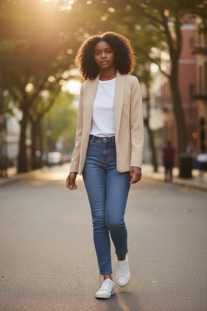 Elevate your wardrobe with this elegant blazer, designed with a classic open-front style, notched lapels, and structured shoulders that deliver...